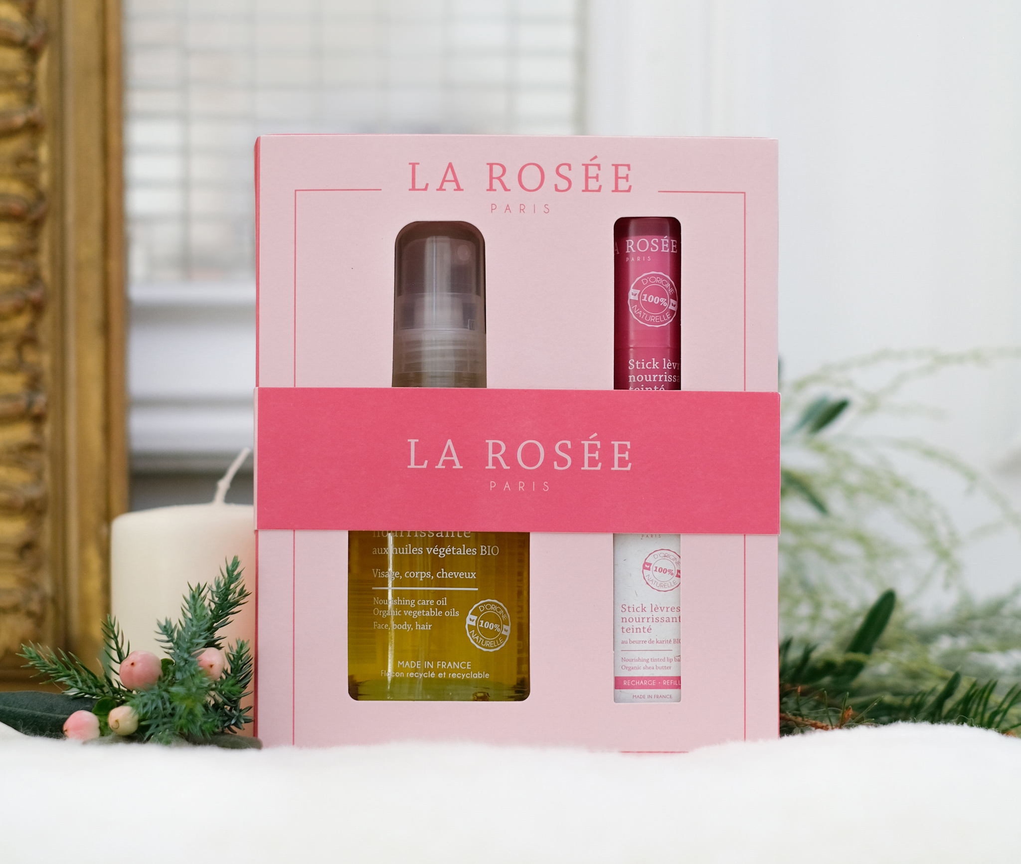 Le Coffret Premium 2024 contient une huile de soin nourrissante aux huiles végétales BIO, un produit polyvalent qui sublime le visage, le corps et les cheveux grâce à ses ingrédients riches en bienfaits naturels. Pour ajouter une touche glamour et hydratante, le coffret inclut un stick lèvres teinté au beurre de karité BIO, qui laisse les lèvres délicatement colorées d’une teinte rose framboise. Et pour prolonger le plaisir, une recharge de ce stick lèvres est offerte, permettant d’apprécier encore plus longtemps ce soin hybride.
